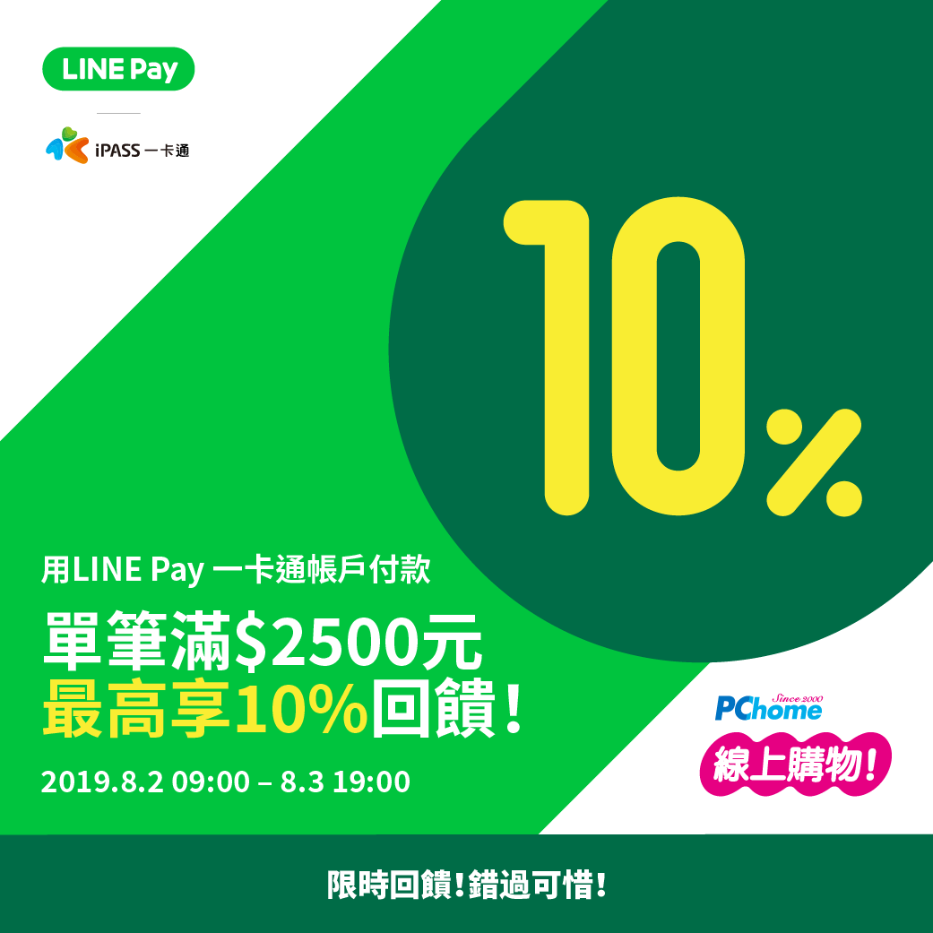 Pchome購物用line Pay結帳 單筆消費滿額最高享10 回饋